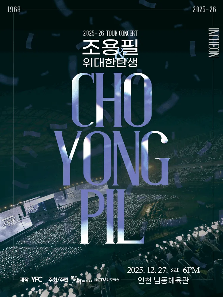 대한민국 가요계의 살아있는 전설 조용필이 2025-26 전국투어 콘서트를 개최합니다. 인천 공연은 2025년 12월 27일(토) 오후 6시, 남동체육관에서 열립니다. 120분 동안 펼쳐질 이번 무대는 ‘위대한탄생’ 밴드와 함께, 수십 년의 명곡과 새로운 감동이 함께하는 시간으로 기대를 모으고 있습니다.