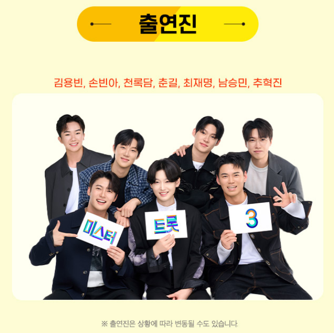 출연진은 미스터 트롯3 TOP7 전원입니다.
